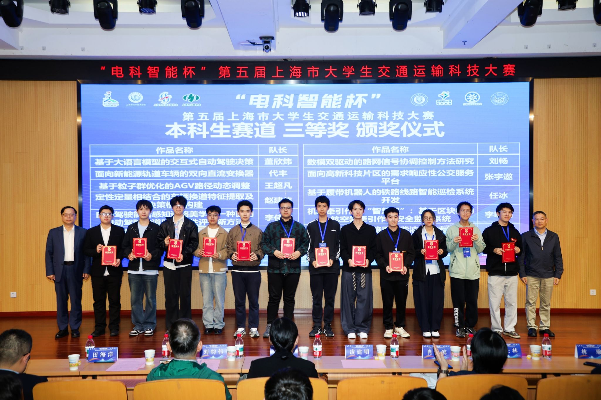 11月15日,“电科智能杯”第五届上海市大学生交通运输科技大赛在上海理工大学圆满落幕。经过激烈角逐,我院学子表现优异,斩获全部7项一等奖中的4项,位列上海高校第一,实现我院在该项赛事中新的突破!其中,本科生赛道一等奖2项、二等奖3项、三等奖8项,研究生赛道一等奖2项、二等奖2项、三等奖2项,获奖总数达19项,超过决赛项目总数的一半,同济大学获优秀组织单位荣誉。